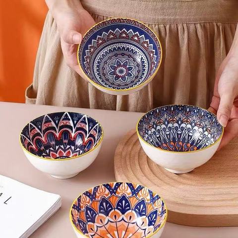 2025 populaire 5.5 pouces bohème bol à salade en céramique cadeau en porcelaine écologique de l'usine chinoise pour le stockage des aliments